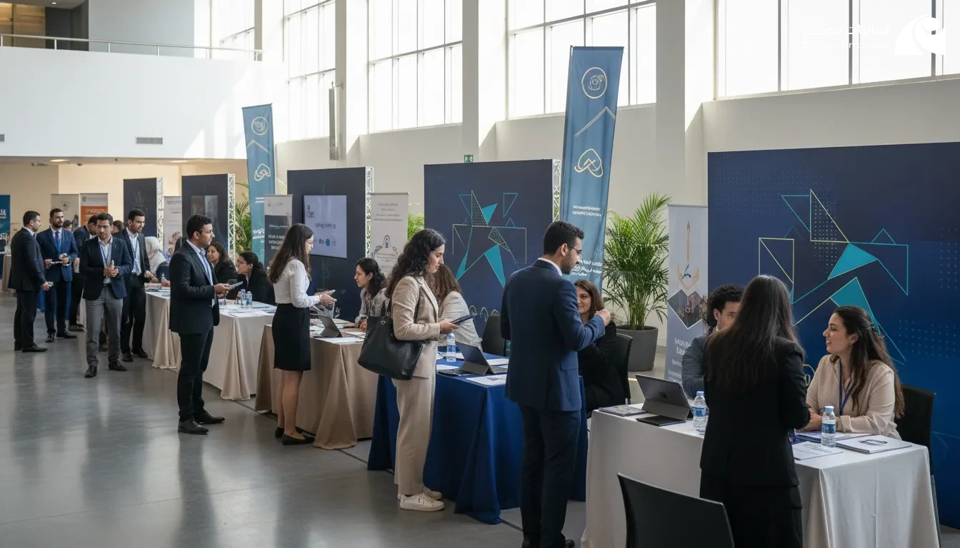 يمتد المعرض على مدار يومين 18 -19 أبريل 2026 من الفعاليات المكثفة داخل مقر الجامعة. حيث تم تصميم المساحات اللوجستية لتستوعب أجنحة الشركات العارضة بجوار قاعات ورش العمل التخصصية. يتيح التنظيم الدقيق للمشاركين إمكانية إجراء المقابلات الشخصية الفورية، والحصول على جلسات “كوتشينج” مهني، وحضور محاضرات يقدمها خبراء في مجالاتهم. إن هذه البيئة المتكاملة تضمن انسيابية التفاعل بين العارضين والزوار، مما يسهل عملية تبادل المعلومات والتقديم على الفرص المتاحة بكل يسر وسهولة.